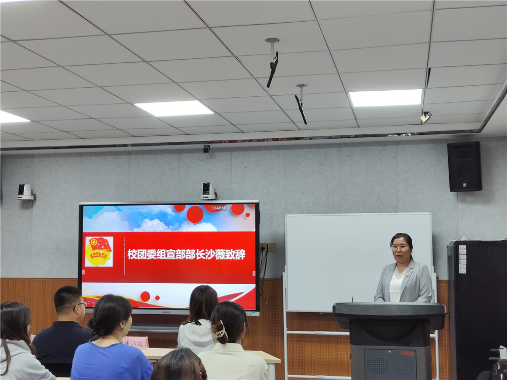 首先,沙薇代表校团委致辞。她要求公司员工团干部应学好团务知识,持续做好基层团支部建设。接着,对团干部寄予了殷切的期望。最后,她勉励员工团干在自己的岗位上不负组织信任,勤勉务实工作,竭诚服务和联系广大团员及青年。