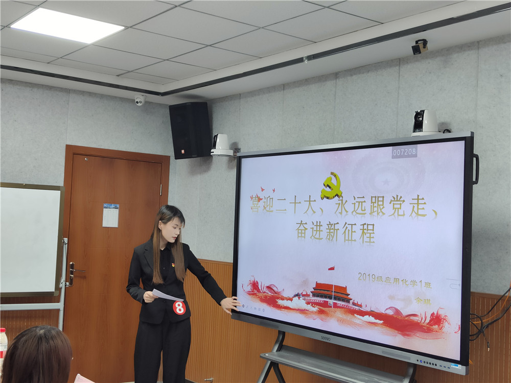 接着,各参赛选手围绕党的最新理论成果、党的青年运动时、新时代中国特色社会主义的伟大成就、传承红色基因等主题,以发扬优良品格、坚定跟党走为思想核心,依次展开团课讲解。参赛者们准备充分、思路清晰、环节紧凑、选题紧扣主题,将具体理论知识和个人实践经验相结合,融入到团课内容之中,阐释个人对共青团的认知,践行党有号召、团有行动、党有要求、团有措施的工作要求。