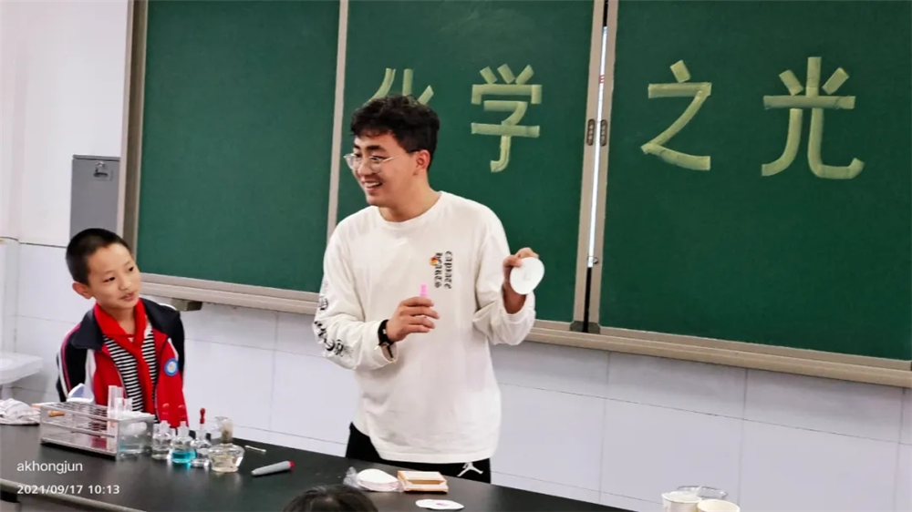 活动中,公司师生通过趣味小实验、化学现象趣味问答等环节,激发起同学们对化学知识、科学知识的热爱。“一色变四色”、“无中生有”、“魔法药水”等富有趣味性和观赏性的小实验,这些神奇的实验现象让员工们兴奋不已。在有趣的实验演示过程中,同学们带着好奇与疑问,目不转睛地看着科普团成员们的有趣演示,争先恐后地提出问题,老师和科普团的志愿者们耐心、热情地为同学们解答,揭示化学的奥秘。随后,在师生们的共同指导下,小朋友们自己动手体验了这些实验,从中感受到了实验的乐趣。实验结束后,公司邀请的职工刘嘉为同学们带来了有趣的英语课堂,让小朋友们感受到英语的魅力。最后,师生们相继走出教室,孩子们挥泪告别,表达他们浓浓的不舍之情。