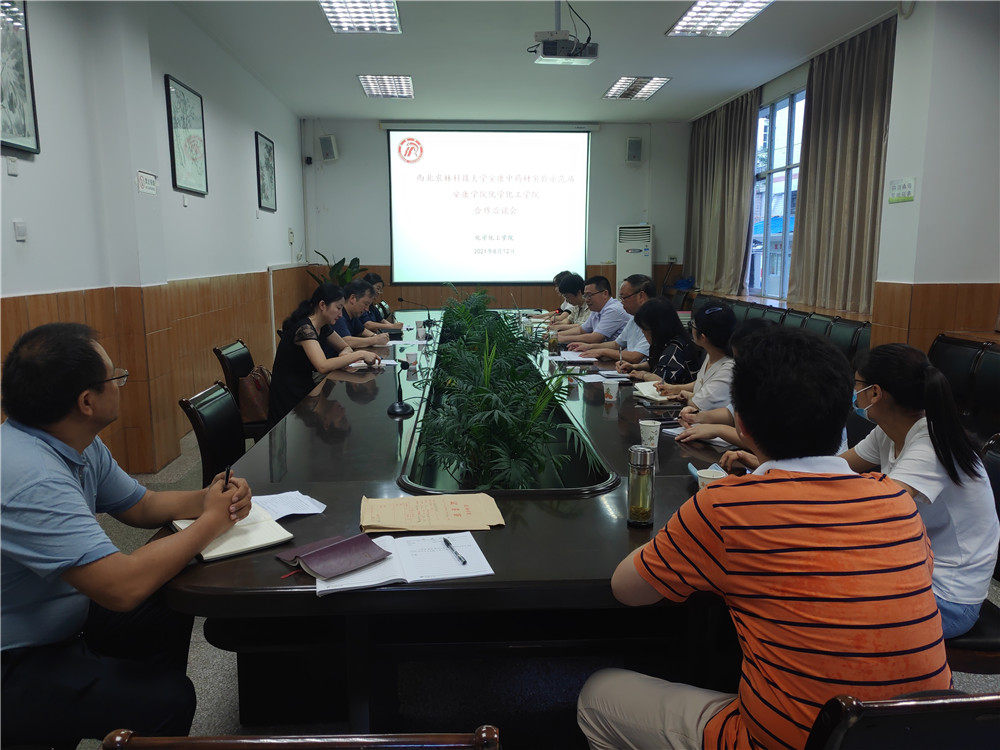 余谦介绍了公司发展历程、发展理念、发展定位和发展成就,对西北农林科技大学长期以来对公司学科专业建设、团队队伍培养、硕士点建设等方面给予的帮助表示感谢。他指出安康地处秦巴山区,地理区位和气候条件独特,中药材资源丰富,被誉为“秦巴药库”,是重要的药材集散地,中医药文化深厚,为中医药产业发展提供了优越条件;在地方历届政府的重视支持下,中医药产业已经发展成为区域支柱产业。他强调,化工公司牵头会同有关公司要抓住机遇、积极作为,成为西农安康中药材实验示范站“一站多点”模式中重要的组成部分,在人才培养、科技创新、教师发展、社会服务等方面深入合作,及时改进合作机制,不断取得成效成果,同时为安康中医药产业发展做出突出贡献。