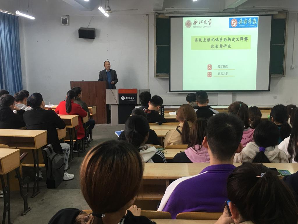 应公司邀请,西北大学二级教授樊君于11月19日为公司师生做了题为“高效光催化体系的构建及降解抗生素研究”的学术报告,报告会在江南校区一号教学楼1510室举行。