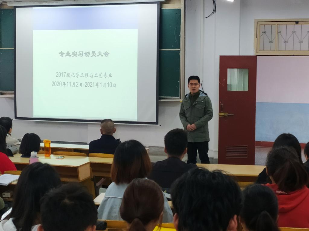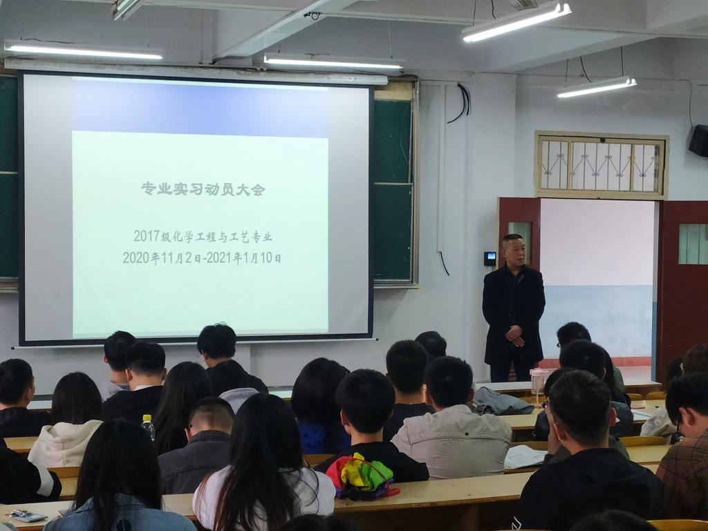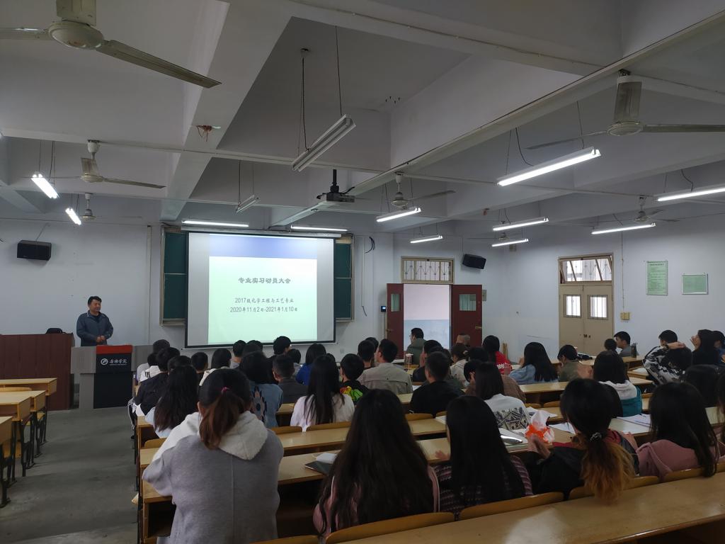 10月27日下午,公司化工系2020年度专业实习动员大会在1510教室举行。公司经理柳林,书记王永东,副经理袁光辉出席会议,公司员工管理、实习指导老师及2017级化学工程与工艺专业75名实习生参加会议。会议由公司化工系主任纪桢主持。