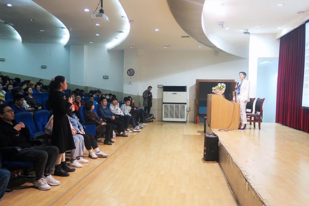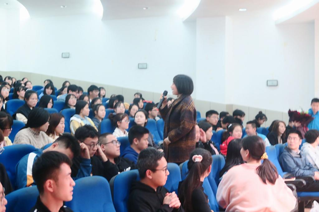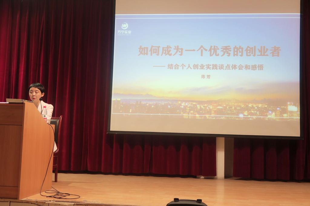 陈芳女士如何成长为一名优秀的创业者”为主题,首先向同学们讲解了国家和地方政府在老员工创业方面的优惠政策,勉励同学们刻苦学习,为在校创业及毕业后创业奠定艰实基础。随后陈女士结合自身的创业过程,从要有改变现状的志向、要有发现商机的眼光要有吃苦耐劳的作风、要有诚实守信的品格、要有敢于挑战的勇气、要有持之以恒的决心、要始终常怀感恩之心等七个方面讲授了如何成长为一名优秀的创业者,引起了同学们浓厚的兴趣。互动环节中同学们踊跃发言,气氛活跃。