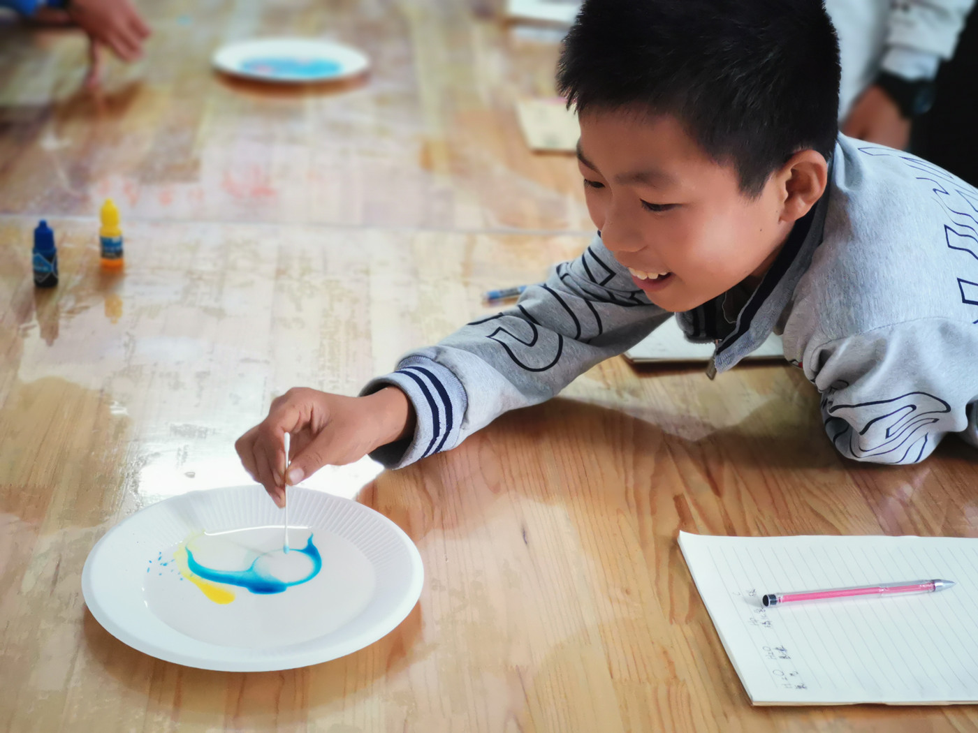 在趣味实验环节,公司老师和员工带去的众多神奇的实验吸引了孩子们的目光,“绚丽牛奶画”、白纸显字清水变牛奶戳不破的气球等让小学的孩子们看得目不转睛,惊叹连连。小员工们十分积极活跃,争先恐后想要来尝试,现场气氛热烈,欢呼声和掌声此起彼伏。整个活动充满了活力,大家在愉快的氛围中将科普知识牢记于心。