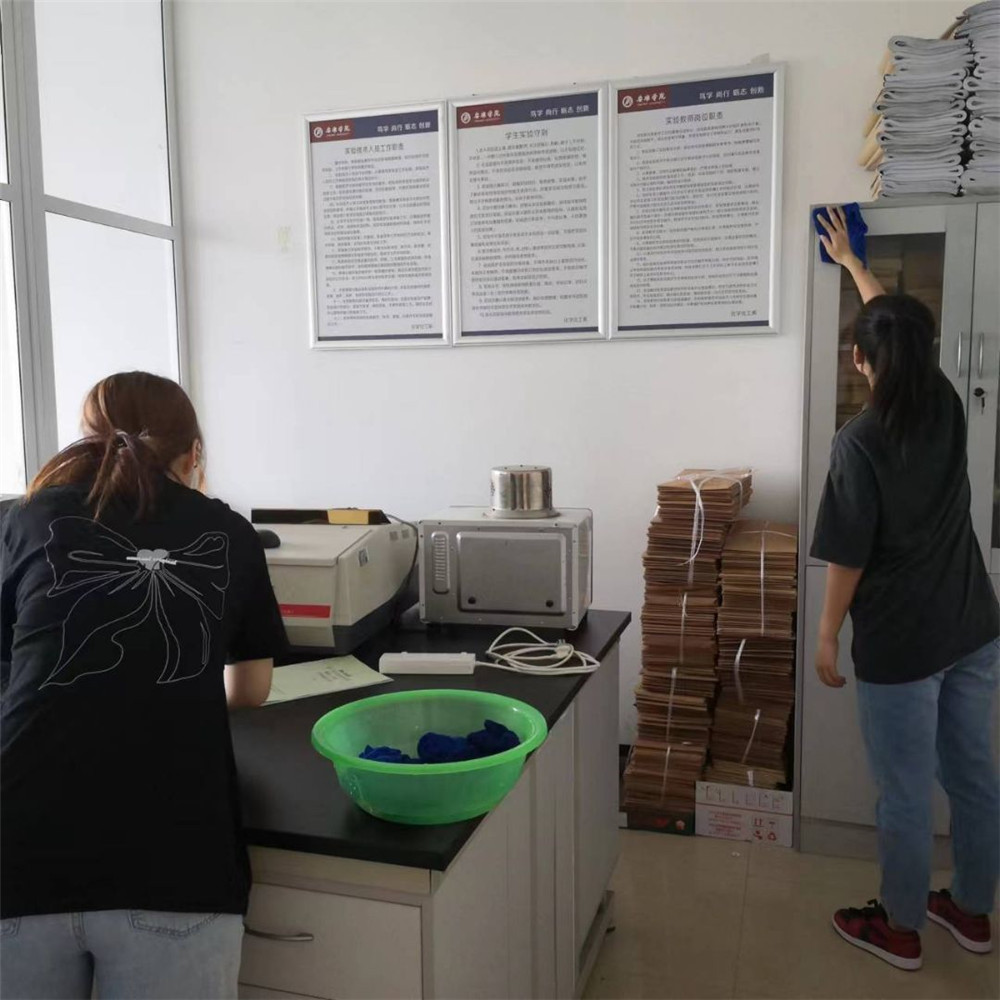 活动期间,2020级所有同学在组长的带领下井然有序地协助实验室管理老师对实验室进行打扫。打扫过程中,大家分工明确,各执其责,从实验台面到实验仪器;从地面到卫生死角,都能打扫的一丝不苟、干净整洁,而且在完成自己任务的同时也不忘互帮互助,在团结协作中认真完成实验室打扫工作。