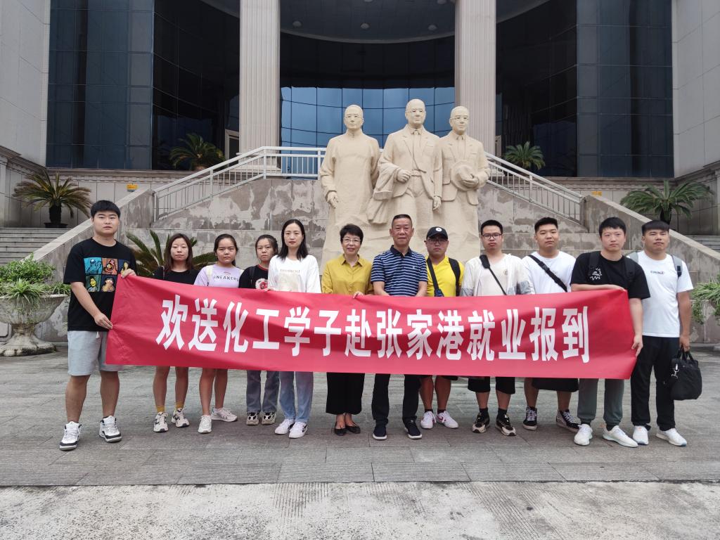 2022年7月6日,公司2022届13名毕业生离校前往江苏省张家港市江苏七洲绿色化工股份有限公司就业报到。sunbet经理柳林、党总支书记王永东、毕业班辅导员王瑜、于正豪在校门口欢送毕业生并合影留念。