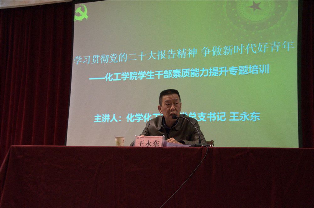 培训班开班仪式结束后,化工公司党总支书记王永东老师以《学习贯彻党的二十大精神争做新时代好青年》为题,给全体参训x学员上党课,解读党的二十大精神,王永东围绕新时代我国教育、科技、人才工作所取得的成就,对新时代人才培养的新要求,对德智体美劳“五育”并举的新要求,带领同学们深刻理解党的二十大报告中中关于教育、科技和人才的重要论述,为同学们深入解读了党的二十大报告,报告最后王永东对青年员工干部提出高校员工干部应坚持的十项工作要求。一是要有远大的理想,并为之付诸实践;二是要努力提高自身的素养;三是要坚持群众路线,从同学中来,到同学中去,帮助同学们解决问题;四是要主动思考、守正创新、于实践中增长才干;五是要具有全局观、责任感和奉献精神;六是要以学习为主、兼顾工作,树立终身学习的观念;七是要遵守社会品德公德,做文明老员工;八是坚持正确的价值取向,实事求是,一切从实际出发;九是练就过硬本领,提升社会适应能力;十是培养融入团队的能力。