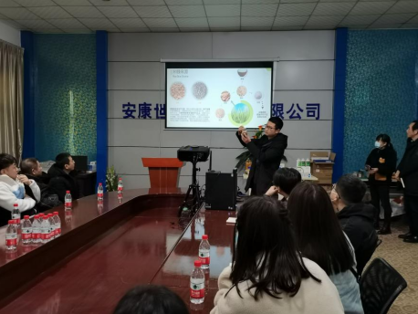 课程实习过程中,安康市金茂生物工程有限公司赵奎山工程师向员工介绍了企业文化、研发平台和生产线等情况。企业技术负责人对肌醇六磷酸等产品的生产制备过程进行了详细讲解并进行产品展示。通过本次课程实习使员工了解到在工业生产中如何让廉价的米糠变为高附加值的化工产品,极大地加深了员工对现代工业化生产的认知。