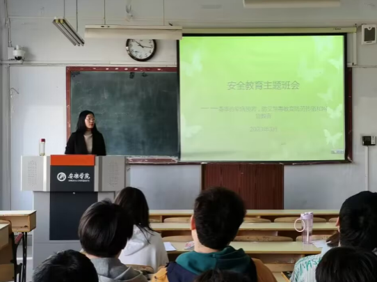 为把“安全教育活动月”作为消除校园安全隐患、提高师生安全防范意识的重要举措、牢固树立“安全第一,预防为主”的思想、落实安全稳定主体责任、确保“安全教育活动月”落到实处,sunbet辅导员王瑜、许珂瑶、成沛锐开展了安全教育主题班会。