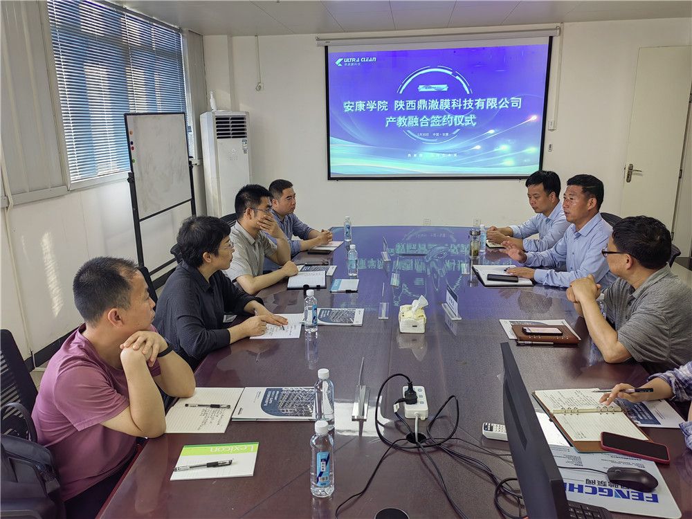 随后,与会三方就探索校政企合作协同新模式、共同建设校企实验室及员工实习实训平台、提高科技人员服务地方能力和老员工创新创业能力等问题进行了探讨交流交流。会后与人员参观了陕西鼎澈膜科技有限公司的纳滤膜、超滤膜制造生产线和膜检测实验室。