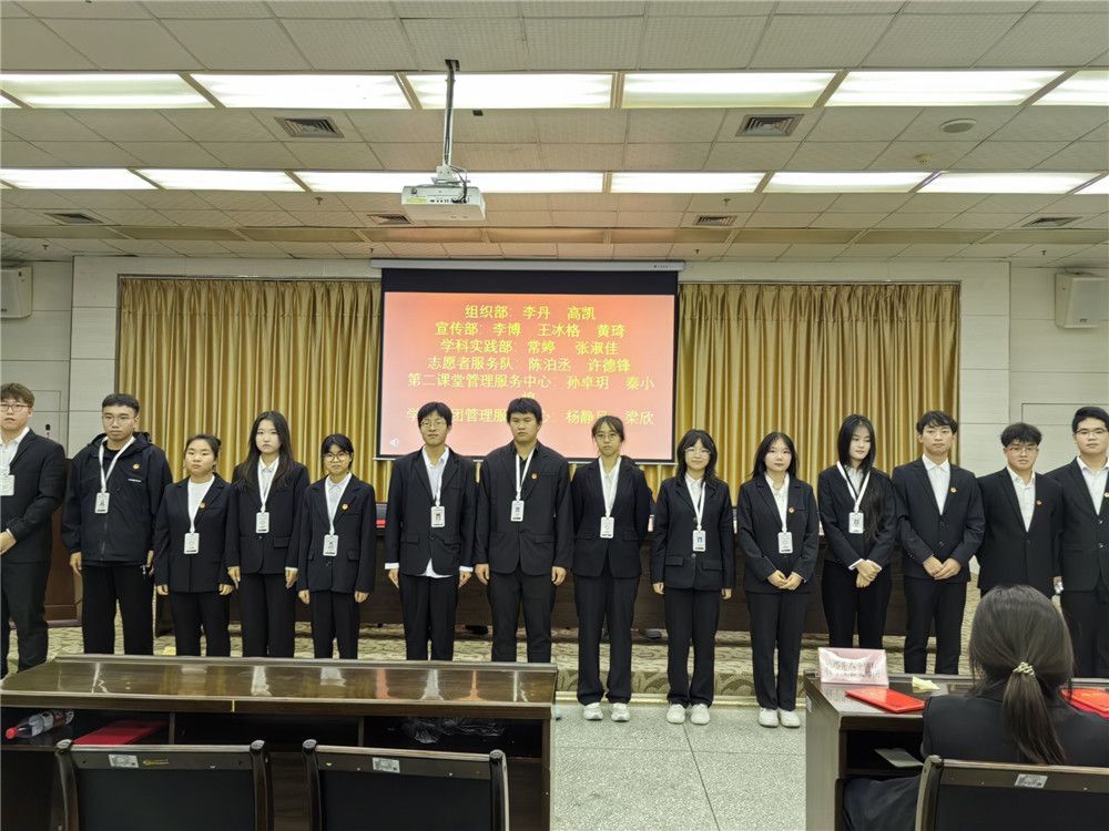 例会第一项,由主席团成员及各部门负责人为工作人员授牌。