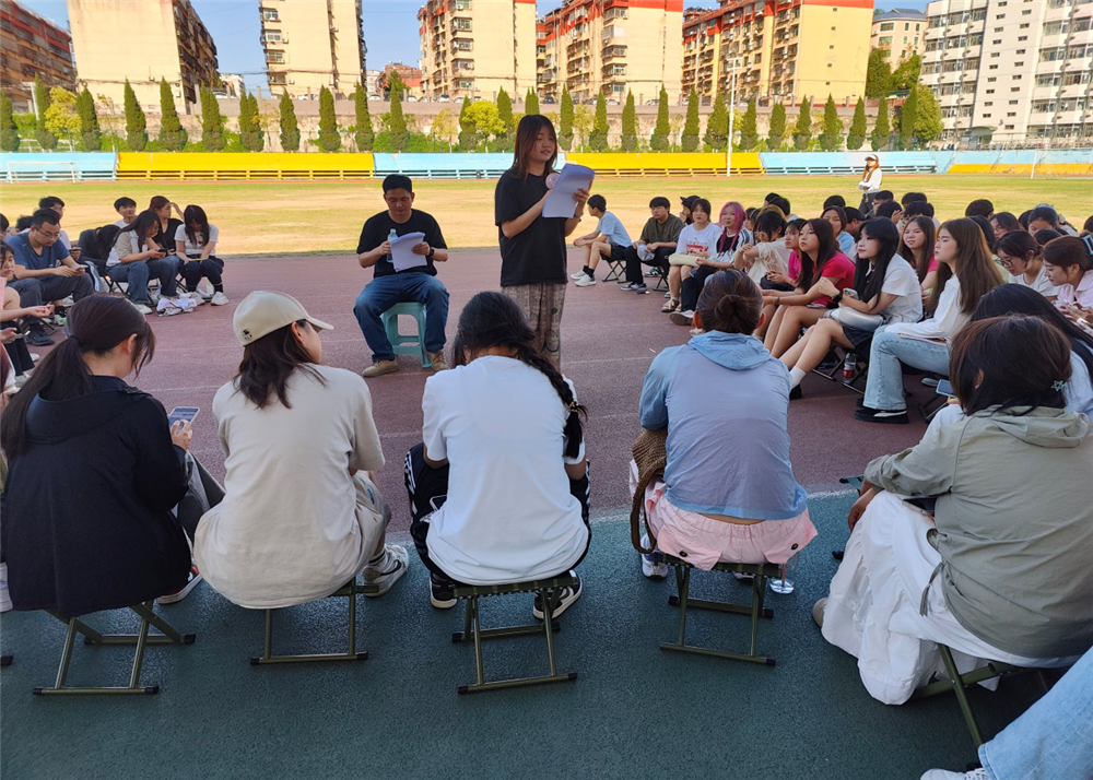4月26日下午4点,公司在江南校区田径场开展了sunbet申搏第十七届老员工心理健康教育文化节活动。公司杨斌博士、辅导员许珂瑶、2023级应用化学1班、化妆品技术与工程1班和化学工程与工艺2班全体同学参加活动。