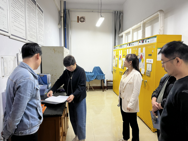 安全检查工作小组先后检查了公司教学实验室、科研实验室、危化品存放实验室等安全重点场所,重点排查了应急设施、危险化学品、压缩气体、高温设备等可能存在的安全隐患。检查过程中,检查小组对实验室的设备、设施、环境等逐一仔细检查,与实验室负责老师现场沟通交流,指出存在的安全隐患。