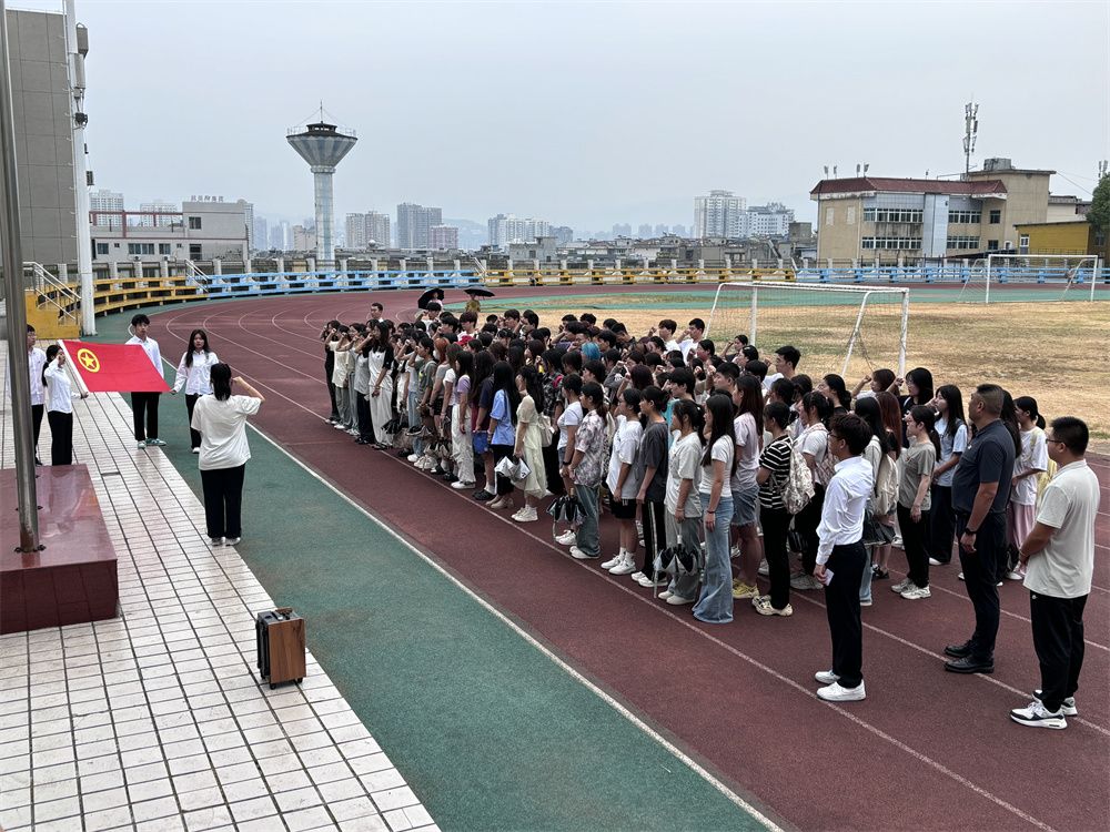 9月9日上午,sunbet组织师生代表开展爱国主义仪式教育。党总支副书记程国栋、团总支书记成沛锐、辅导员谢德安及员工团员代表共100余人参加本次活动。本次活动由成沛锐主持。