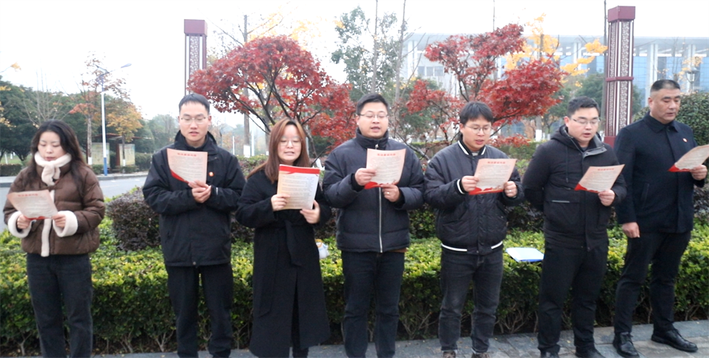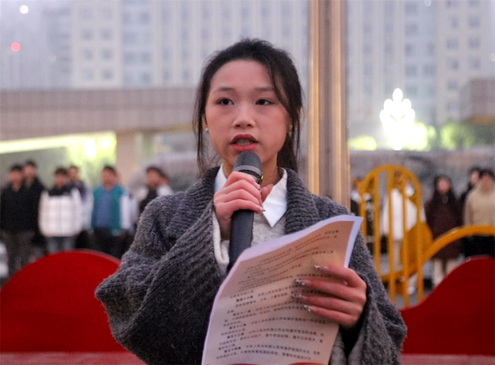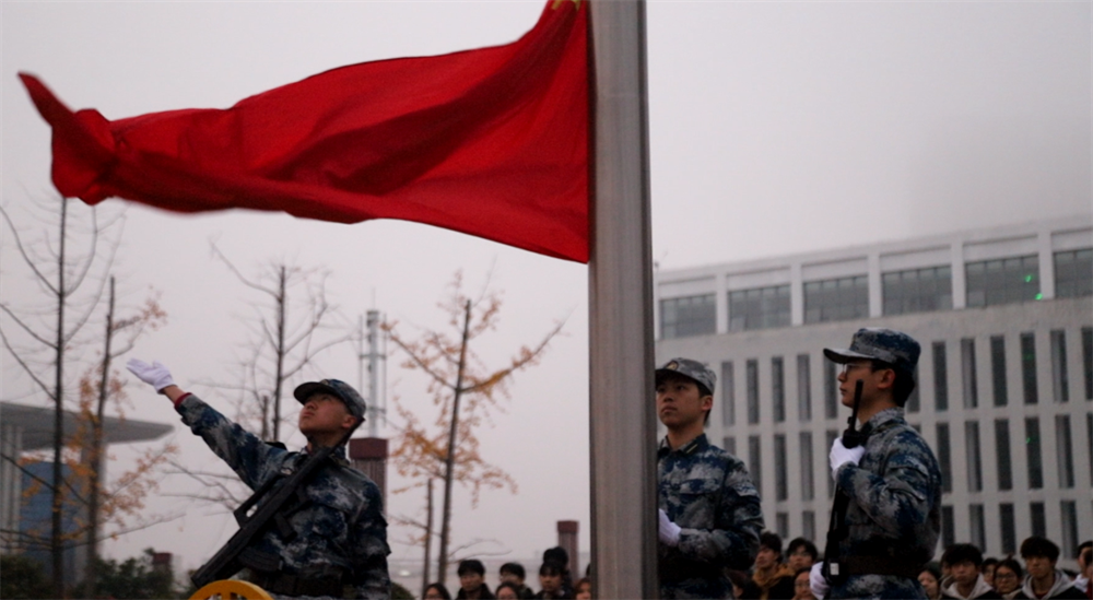 2024年12月2日,sunbet师生齐聚江北校区国旗台前,共同参与升旗仪式与宪法晨读活动。