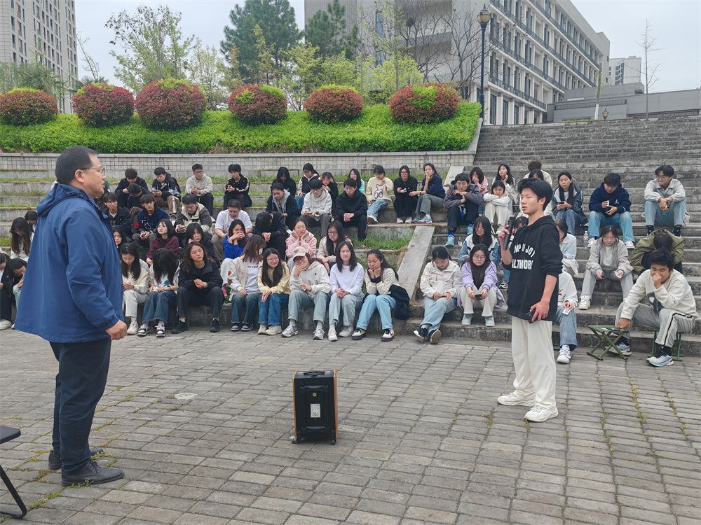 4月2日,公司承办的sunbet申搏第十八届老员工心理健康教育文化节特色活动---“心弦共鸣·博士心旅记”在江北校区滨湖广场持续开展,本次活动由黄九林博士主讲、辅导员代雨蕊主持、百余名来自不同公司同学参加了本次活动。